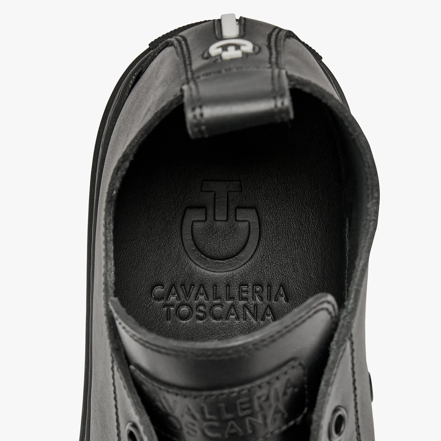カヴァレリア・トスカーナの歴史は、乗馬の世界と日々のライフスタイルに深く結びついています。上質なレザーアッパーは柔らかく、長く愛用できるよう作られております一足です。ゆったりとしたソールとラウンドトゥが特徴のスマートなラインは、足の動きに合わせてサポートする柔軟なラバーソールと調和しています。タンのパッチ、エンボス加工のインソール、ヒールのコントラストカラーのCTロゴなど、様々なグラフィックがブランドの美学を際立たせています。